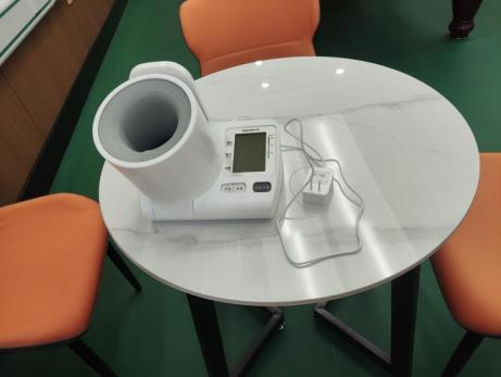生活健康区的升级聚焦精细化关怀,新配备的冰箱可保鲜餐食、水果,为教职工日常储存提供便利;微波炉精准解决忙碌工作中的餐食加热难题,用细节守护生活品质;专业电子血压计将健康管理前置化,随时监测血压指标,把健康关注融入日常,构建起覆盖饮食、健康的全链条关怀体系。